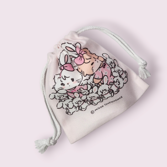 Mikko Illustrations Mousse & Latte Bunny Soft Drawstring Bag