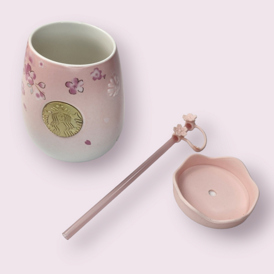Starbucks 2022 China Sakura Ceramic Cup, Lid & Straw